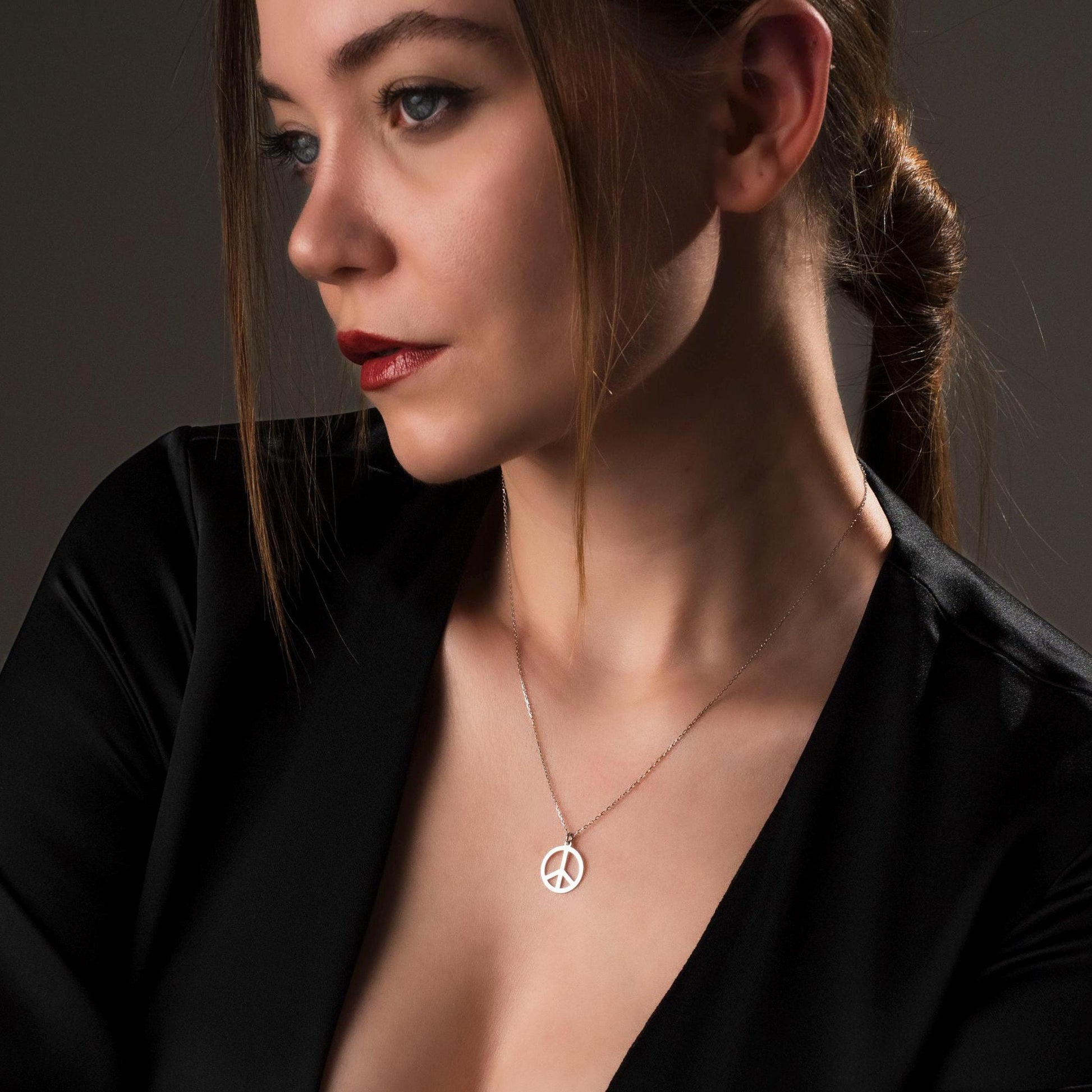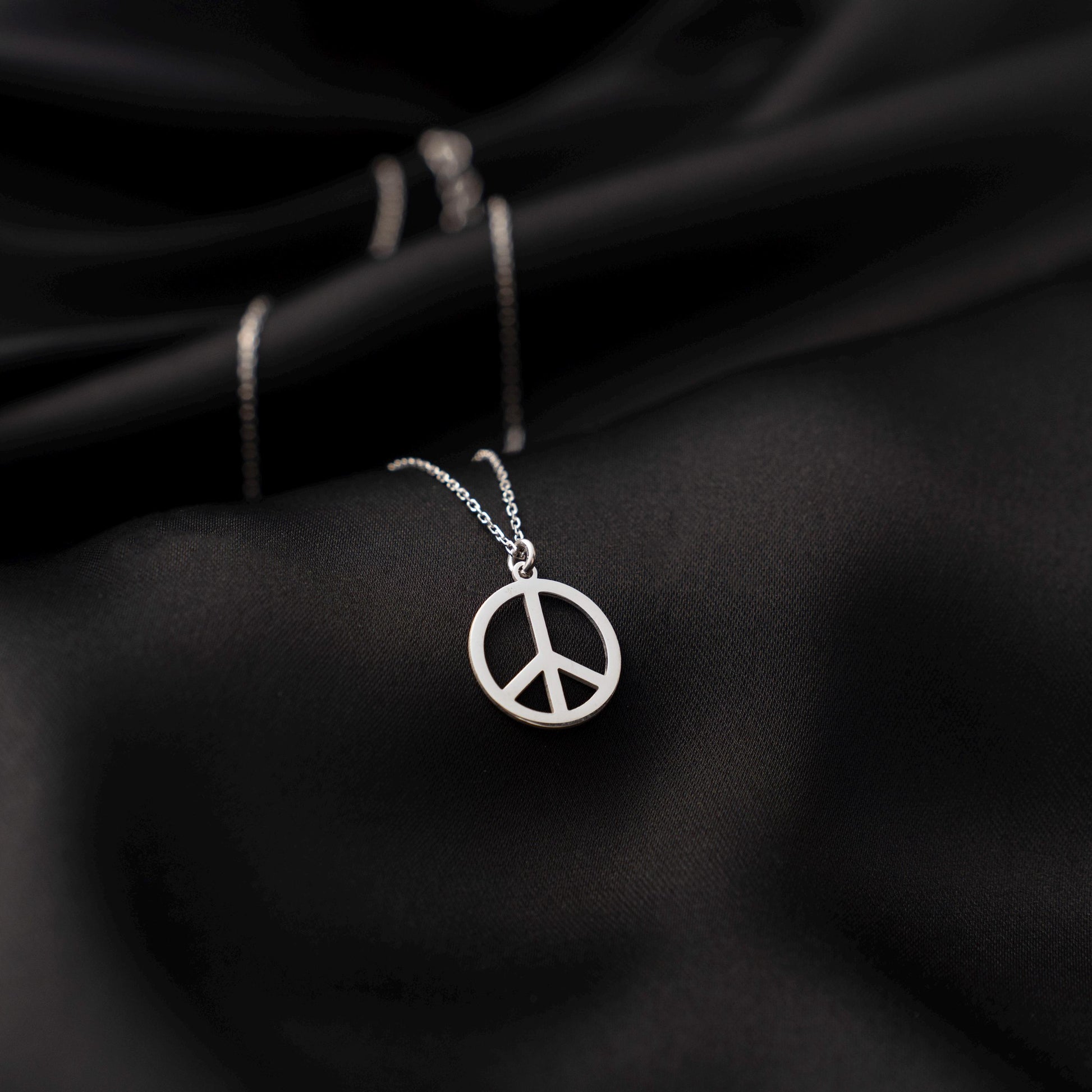 Boho Chic Peace Sign Necklace - Handcrafted Sterling Silver Pendant