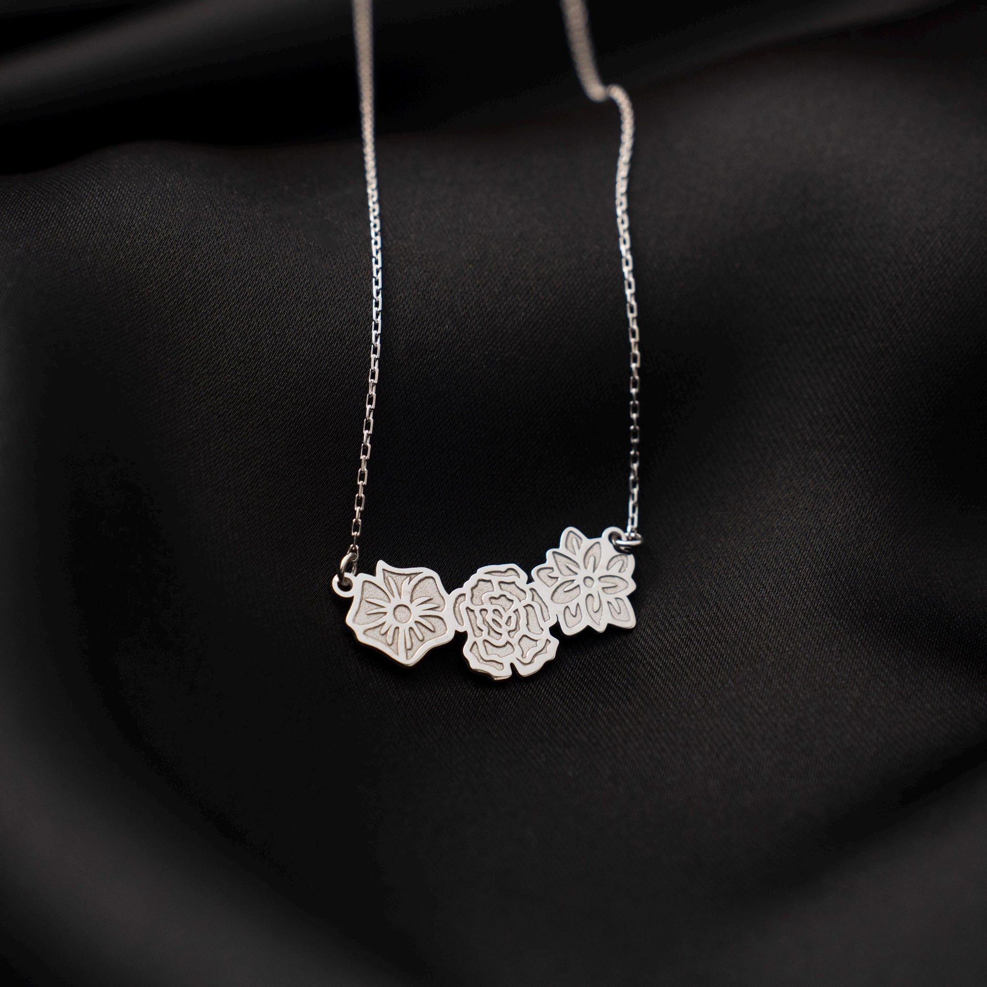 Celebrate Her Birth Month with a Personalized Silver Flower Necklace - Custom Jewelry Gift