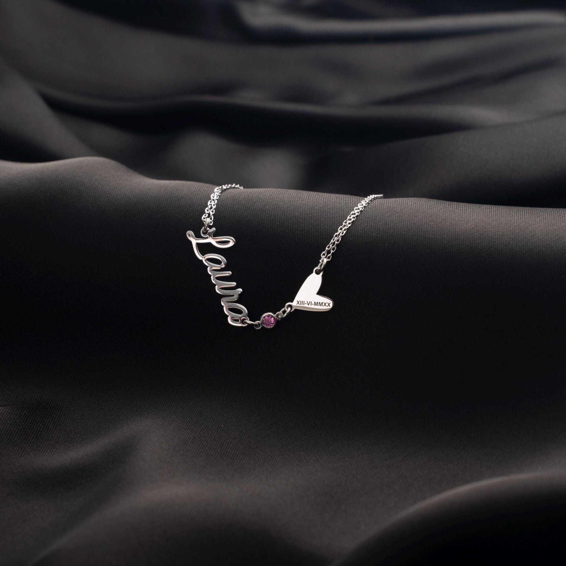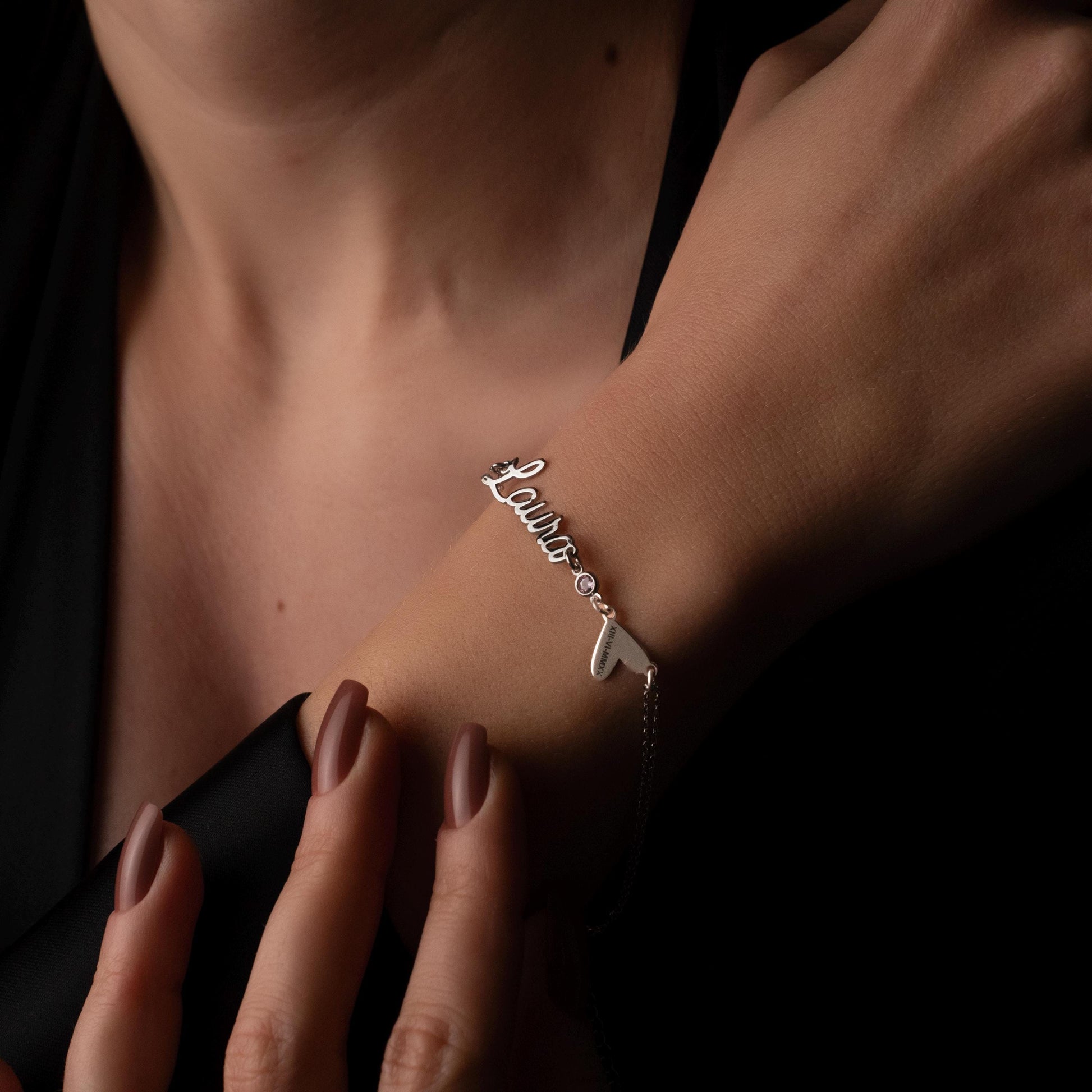 Cherished Keepsake: Personalized Name Bracelet with Birthstone and Engraved Heart Detail