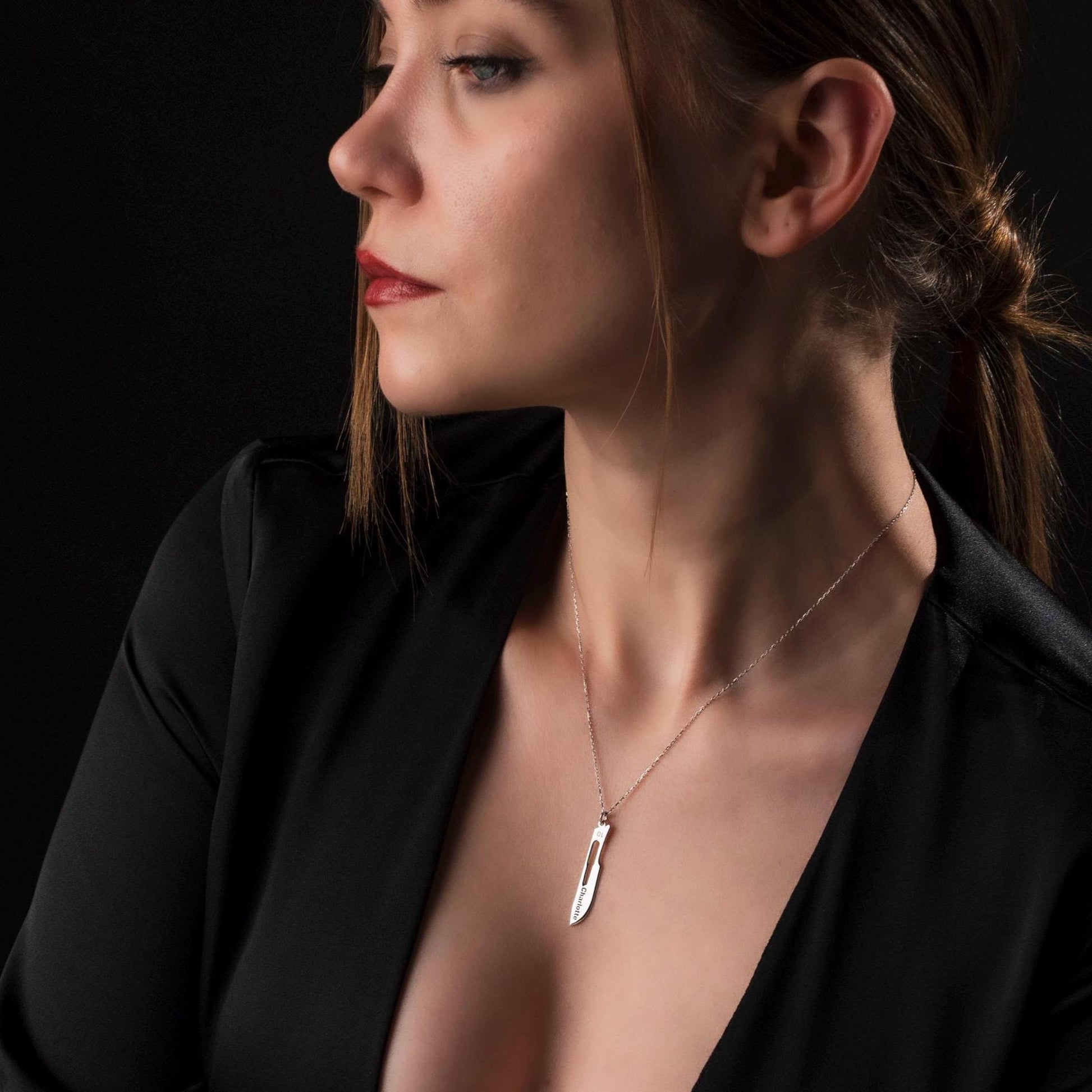 Custom Knife Necklace – Sterling Silver Pendant, Personalized Blade Jewelry, Unique Gift for Her or Him