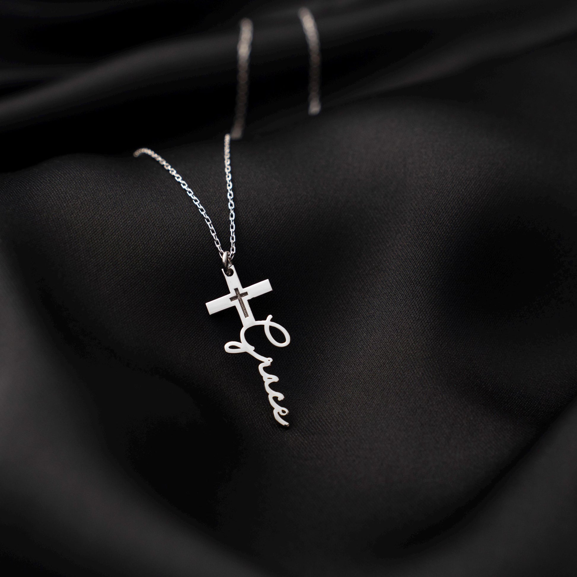 Customized Cross Necklace for Her - Unique Name Pendant in Sterling Silver