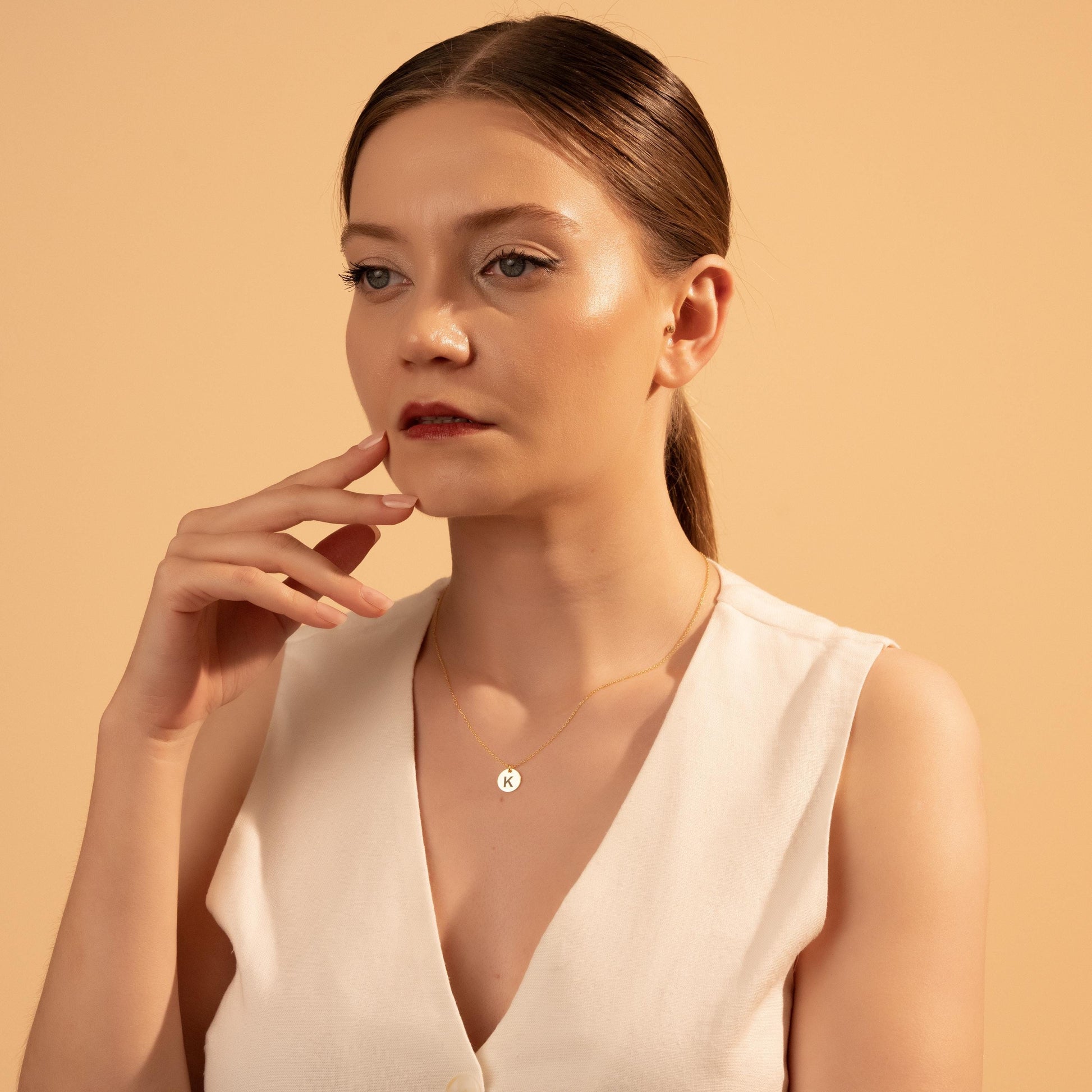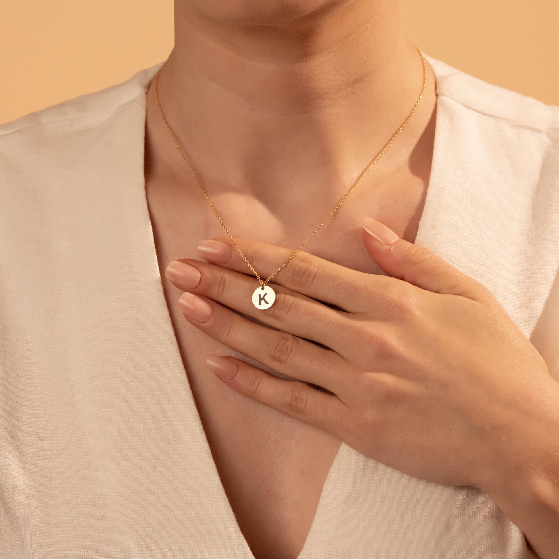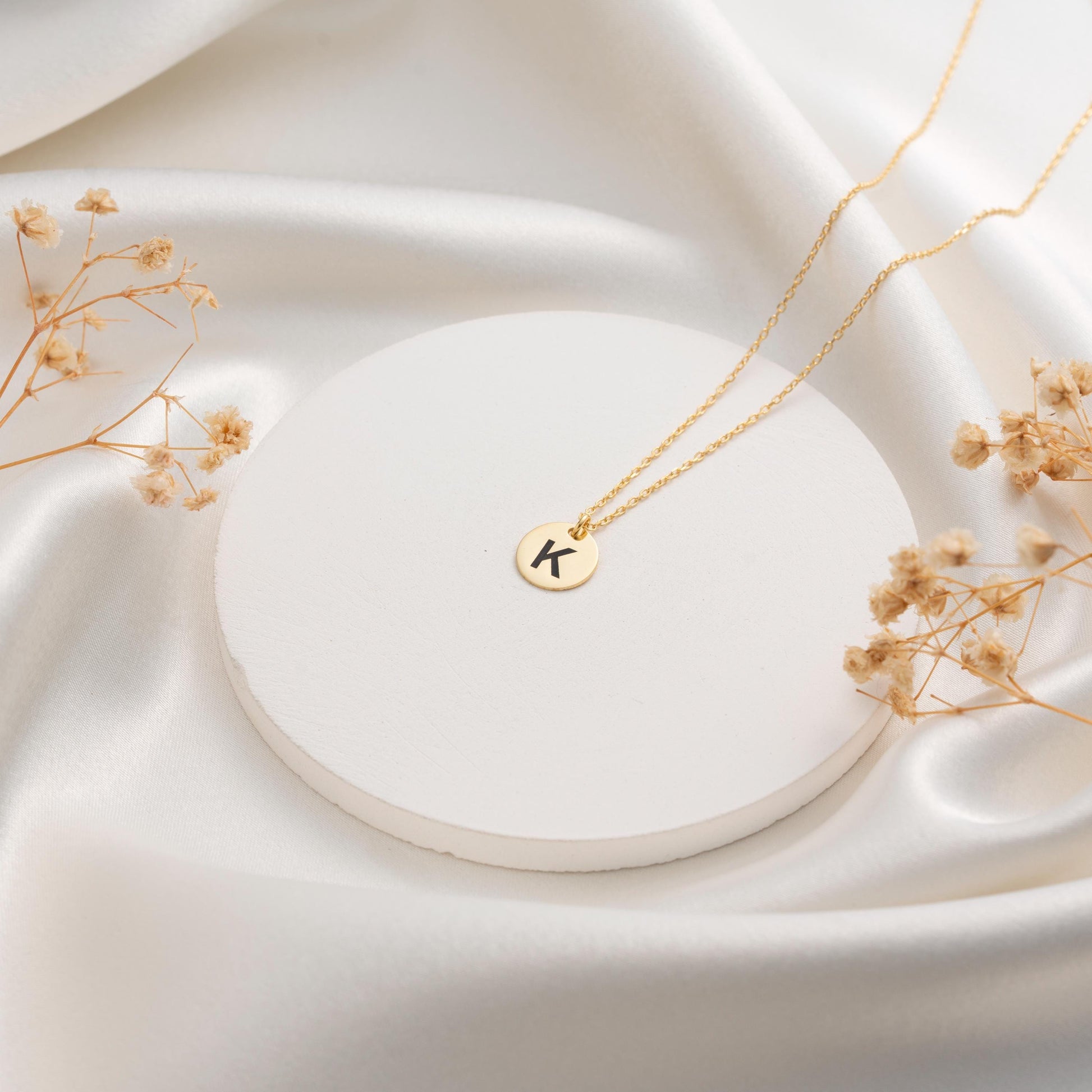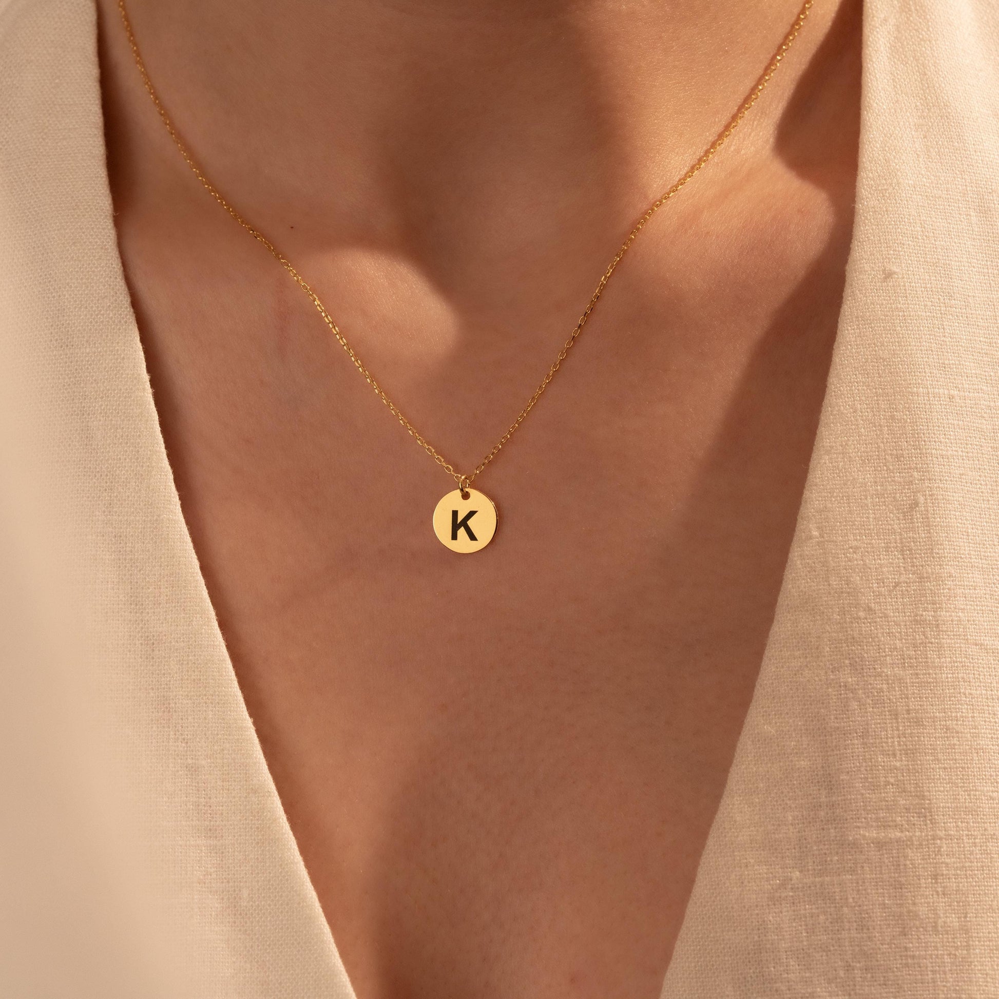 Dainty Custom Letter Necklace - Stylish Gold Initial Disc on Silver Chain
