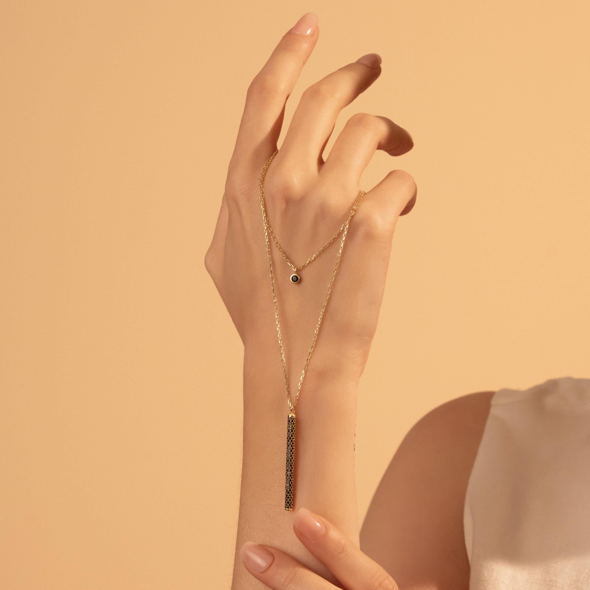 Elegant Black Crystal Layered Necklace - 18K Gold Plated Dainty Jewelry Gift for Her