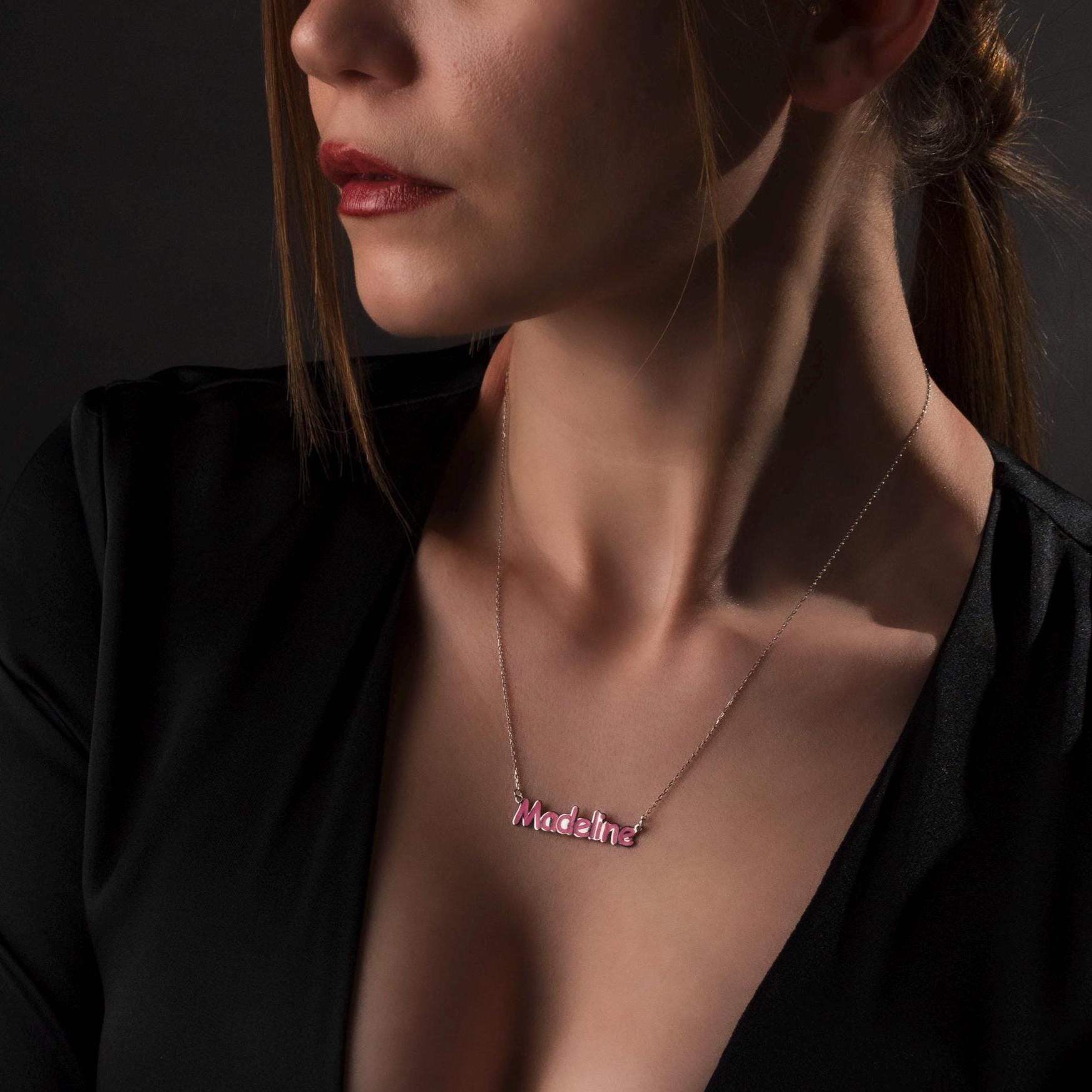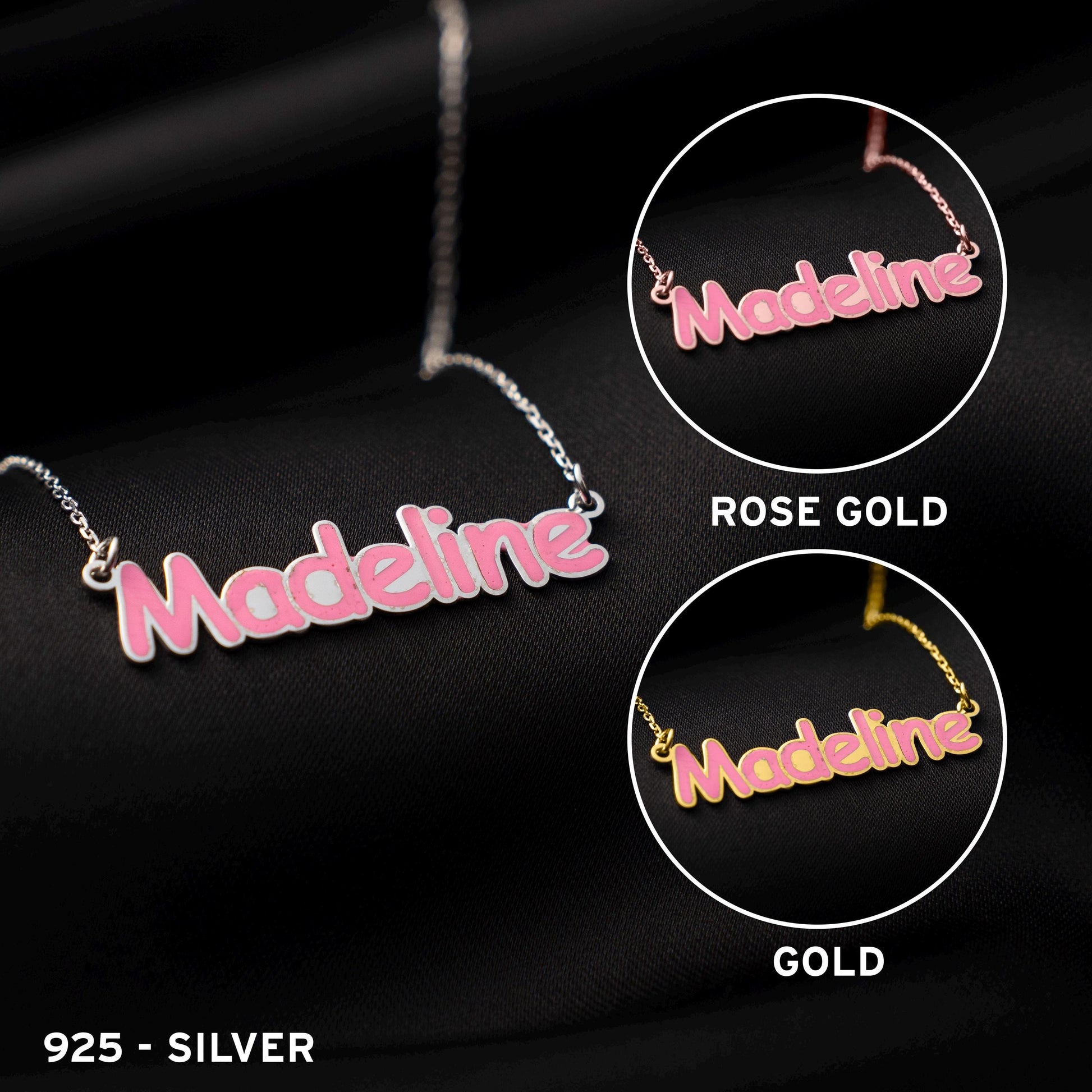 Enamel Name Necklace for Girls: Customized Silver Jewelry, Cute Personalized Gift