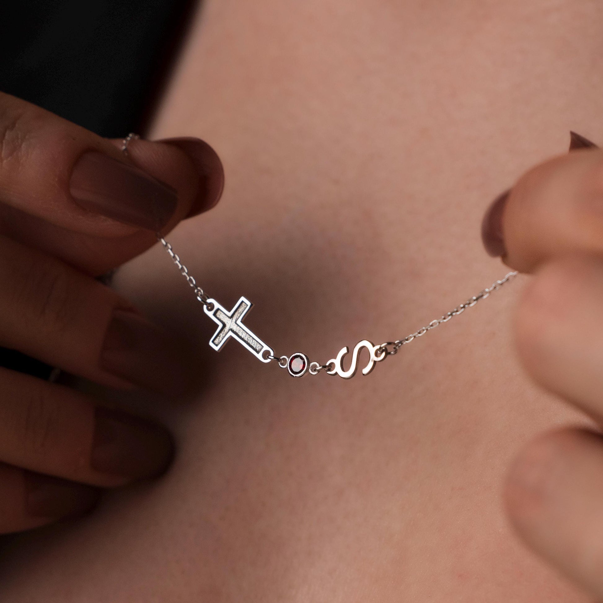 Heavenly Birthstone Blessings: Customized Cross Necklace for Her