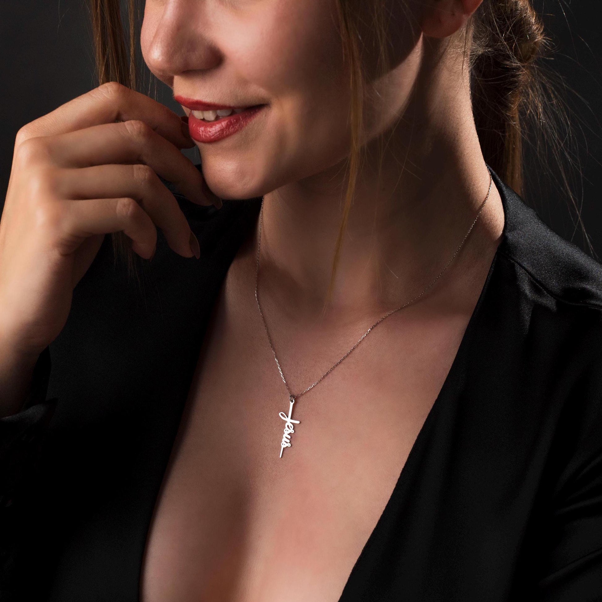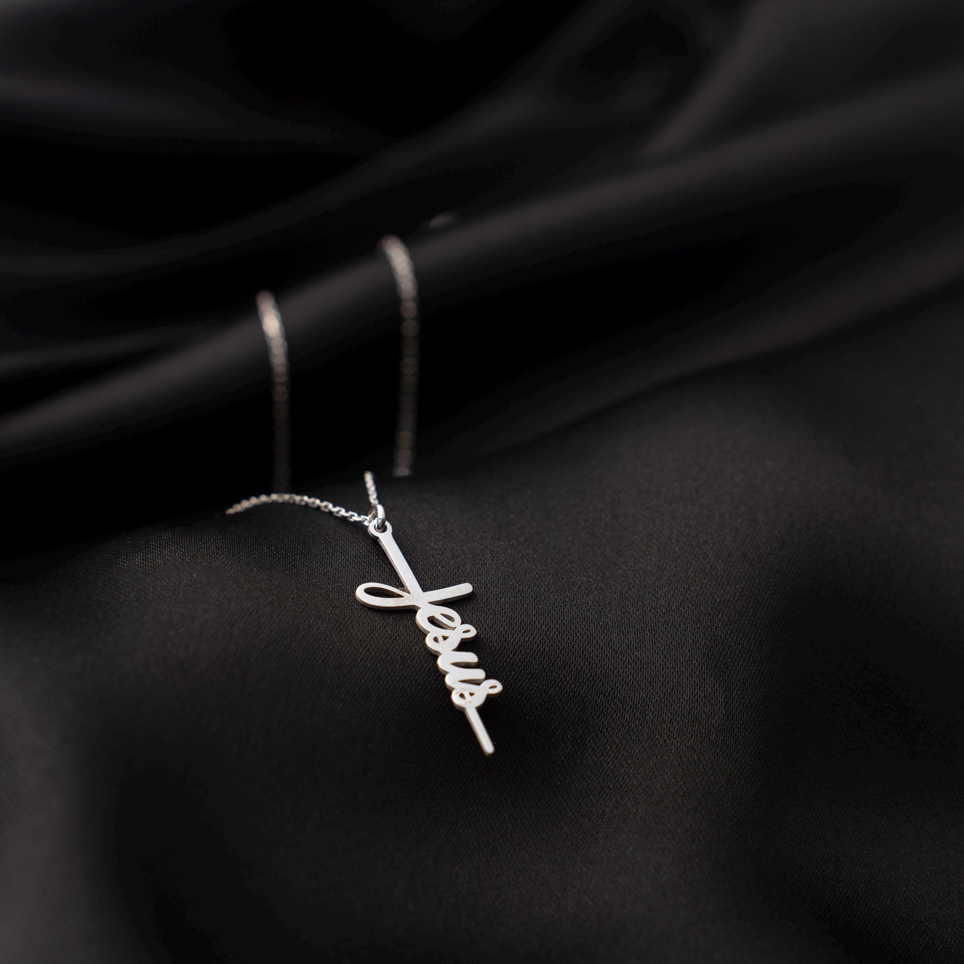 Jesus Name Cross Necklace, Sterling Silver Christian Pendant, Religious Faith Jewelry, Meaningful Christian Gift