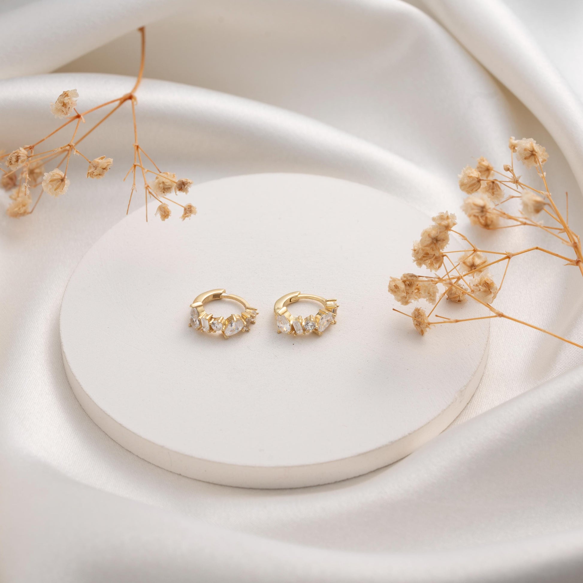 Luxurious Gold Dangle Earrings with Mixed Cut Crystals - Stunning Gift for Her