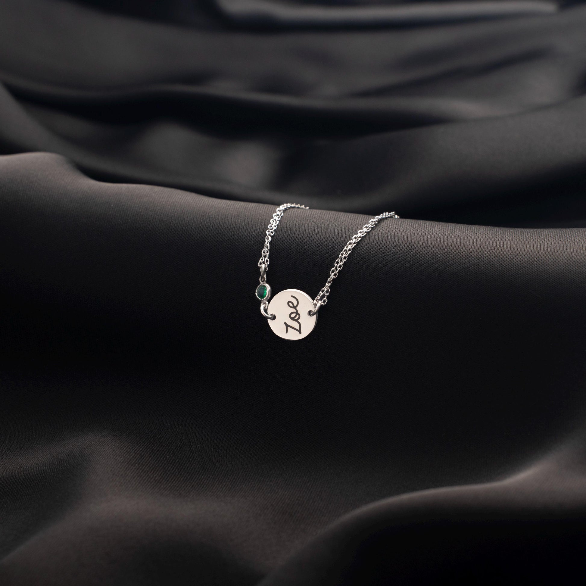 Meaningful Birthstone Bracelet with Name Engraving, Sterling Silver Personalized Jewelry