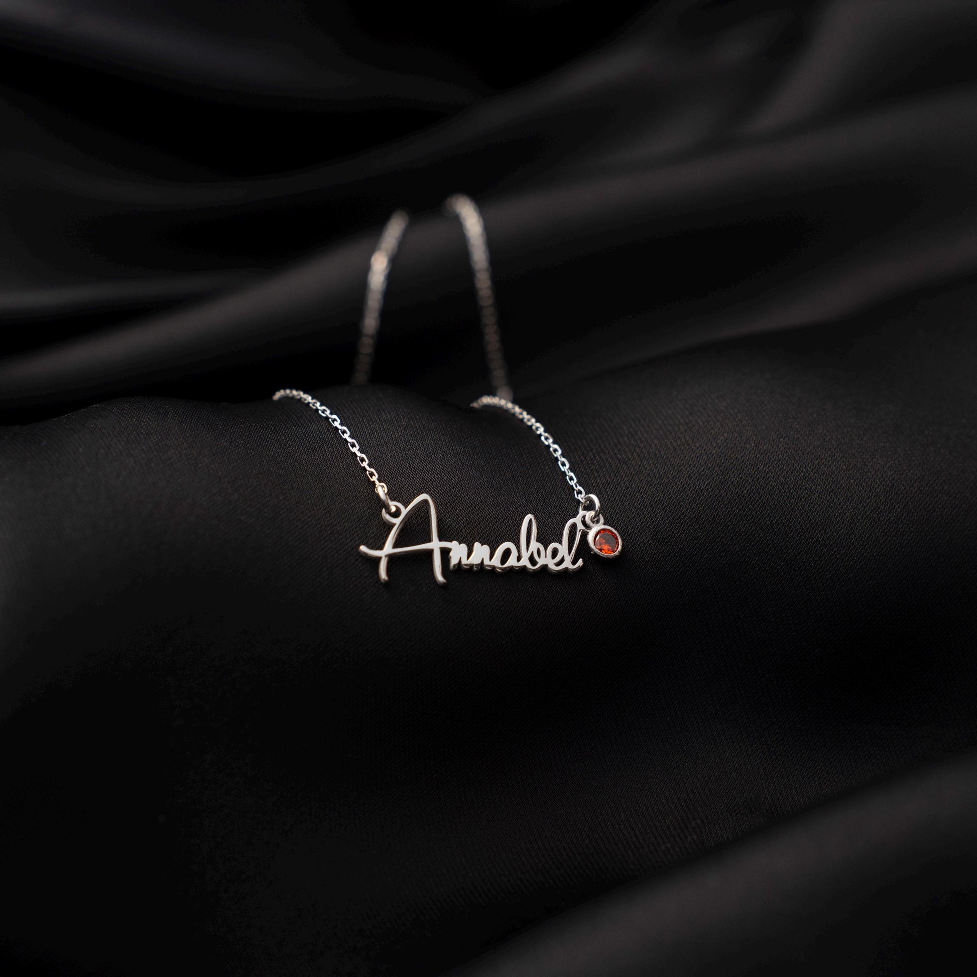 Name Necklace with Birthstone, Custom Silver Jewelry, 925 Pendant, Personalized Gift for Her