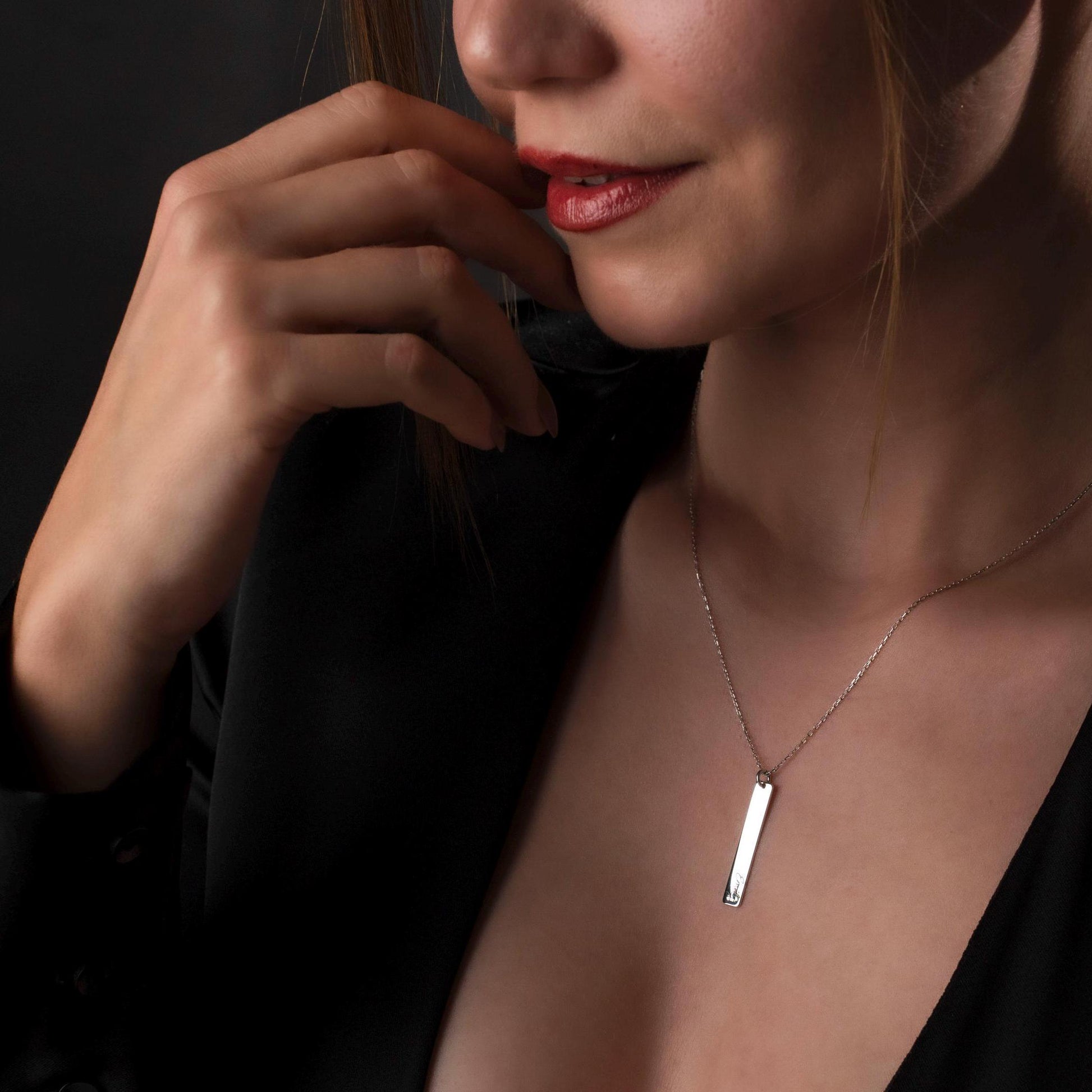 Personalized Bar Necklace, Custom Engraved Pendant, Minimalist Name Jewelry, Sterling Silver Gift for Her