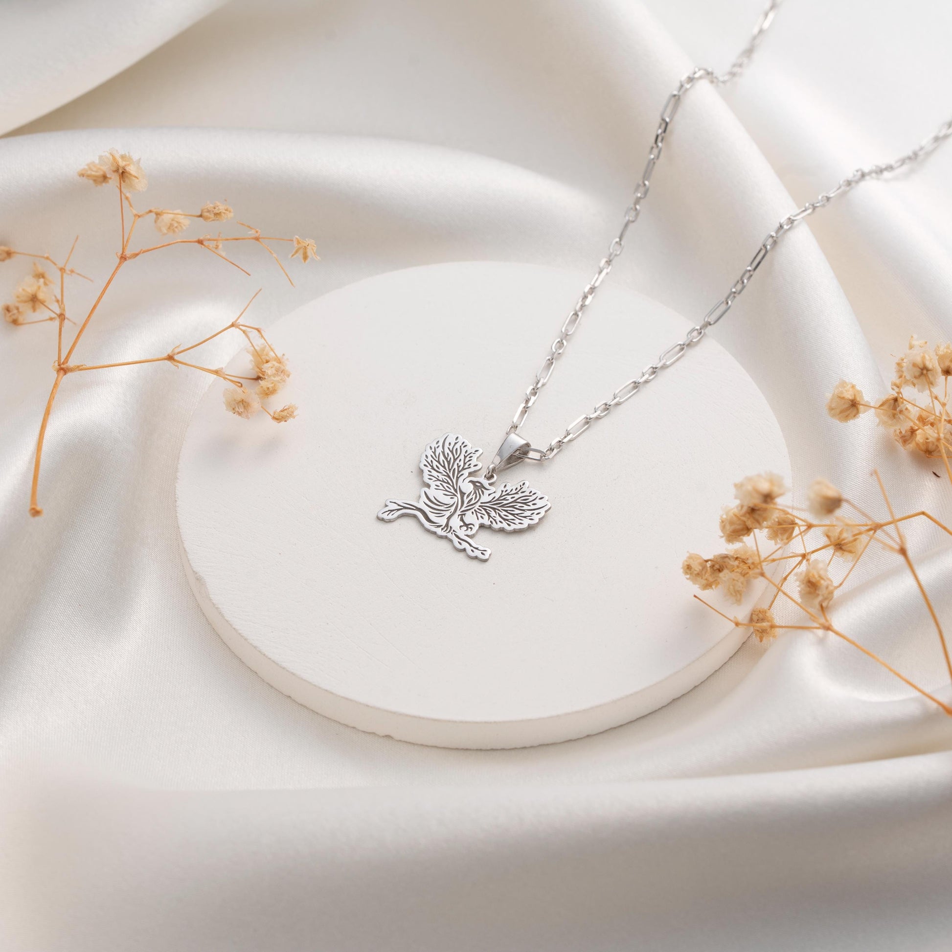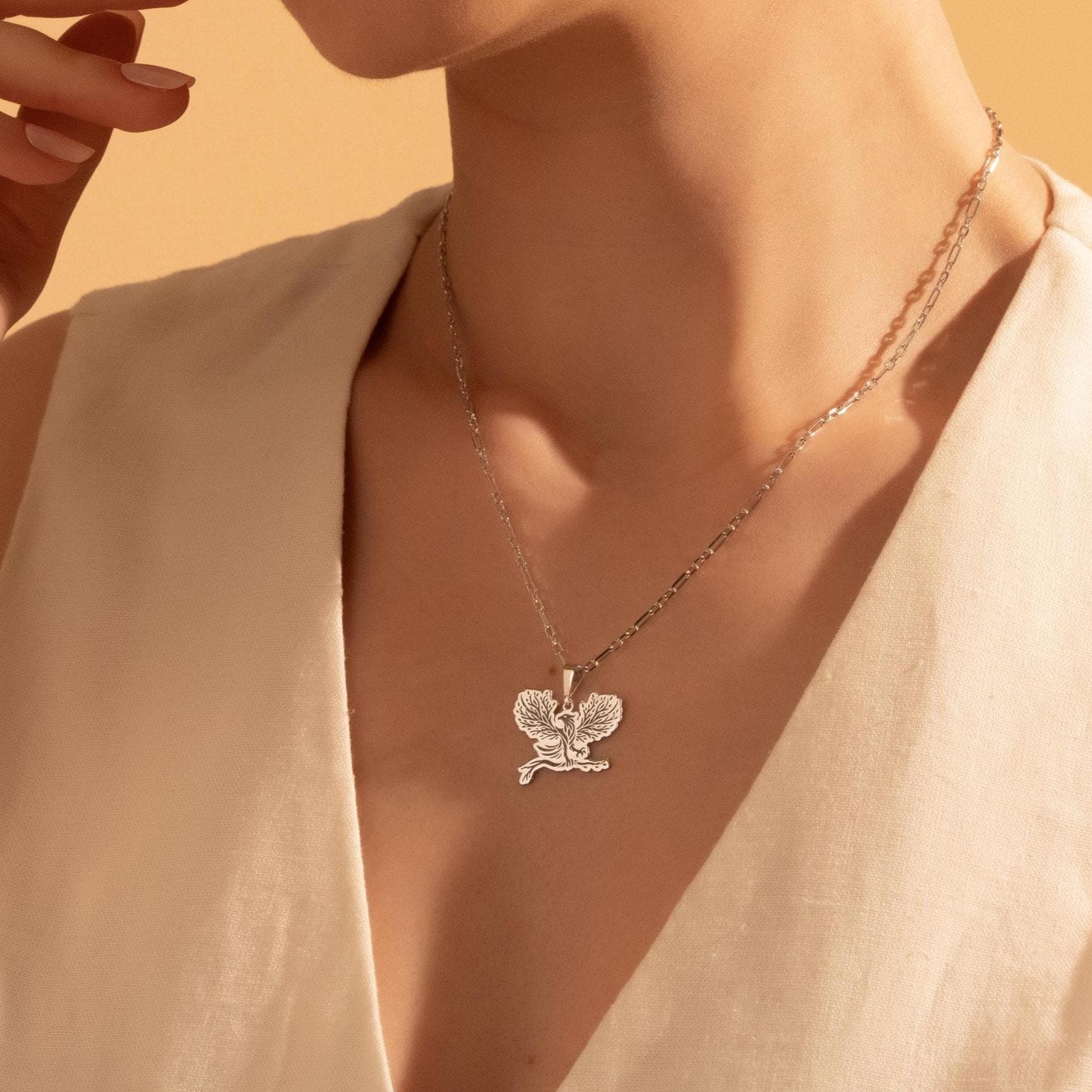Phoenix Bird Silver Necklace – Rising from the Ashes Gift