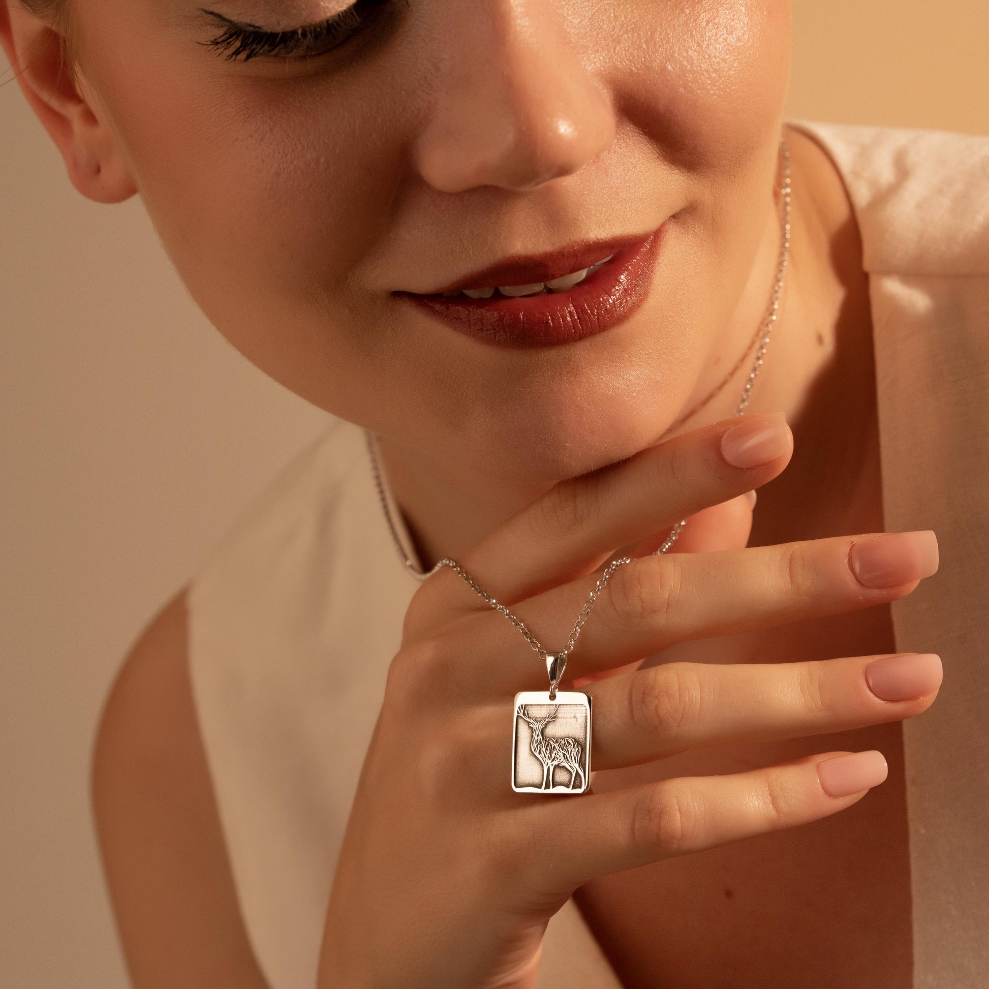 Silver Deer Pendant Necklace – Rustic Nature Gift for Her