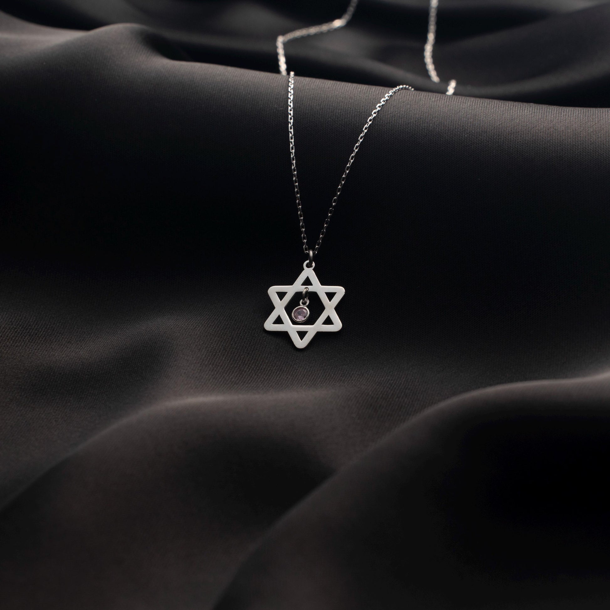Sterling Silver Star of David Necklace with Birthstone Pendant - Elegant Judaica Jewelry