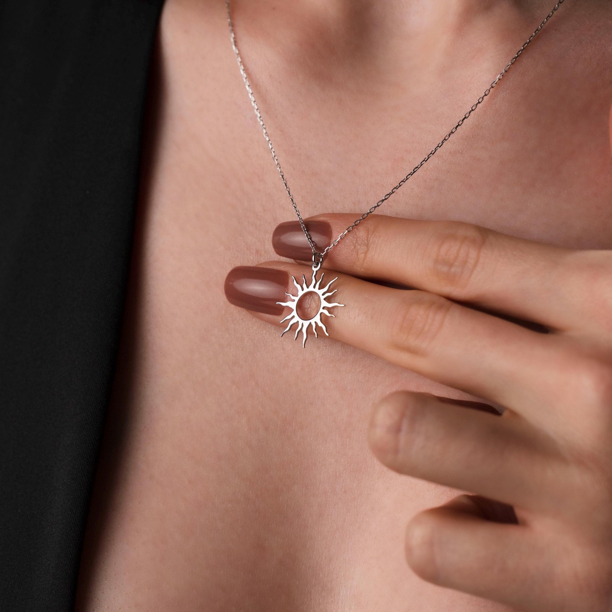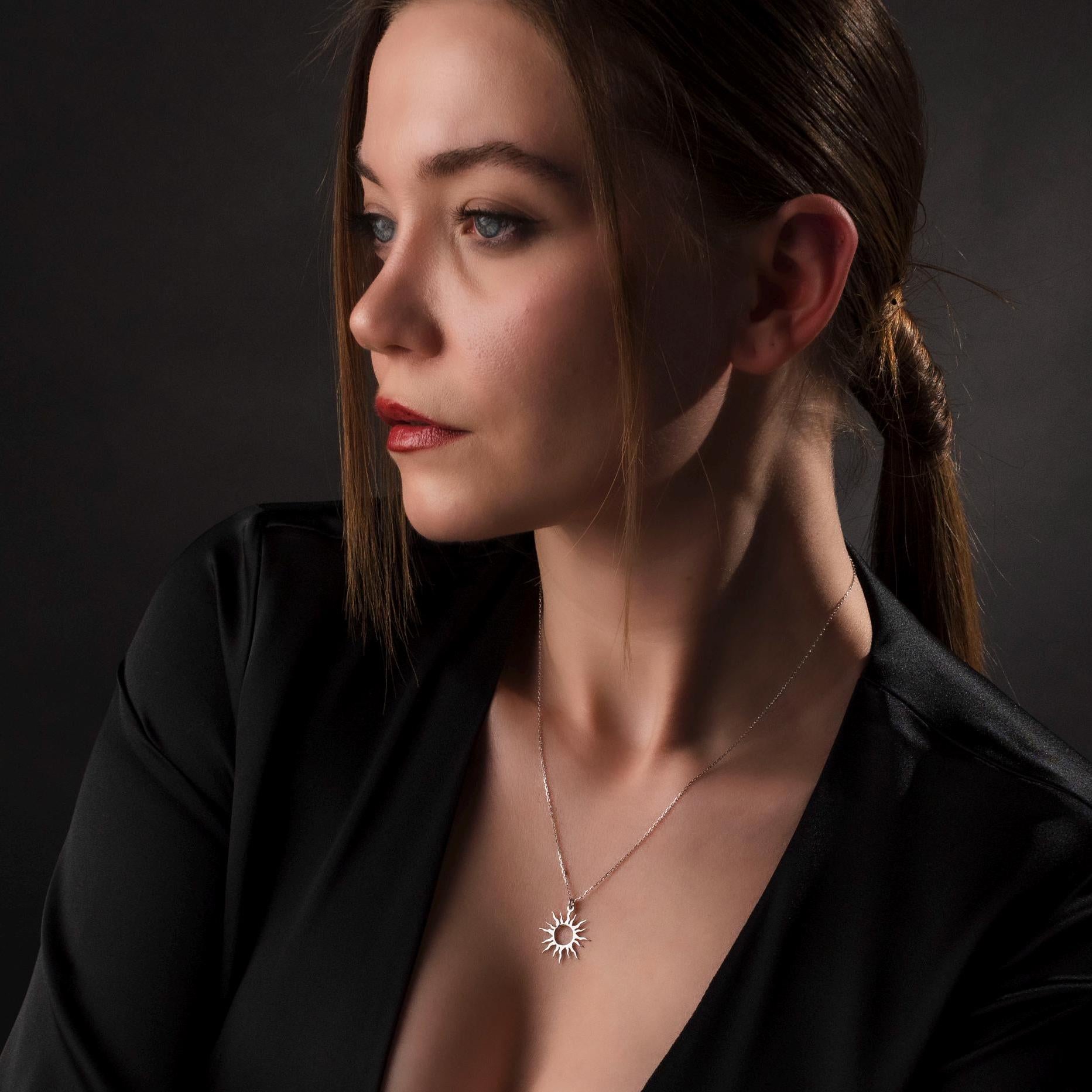Sun Necklace, Sterling Silver Jewelry, Minimalist Sun Pendant, Celestial Gift for Her