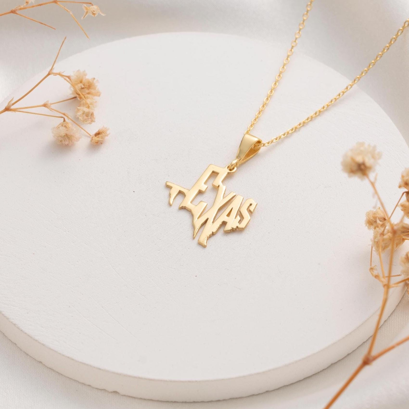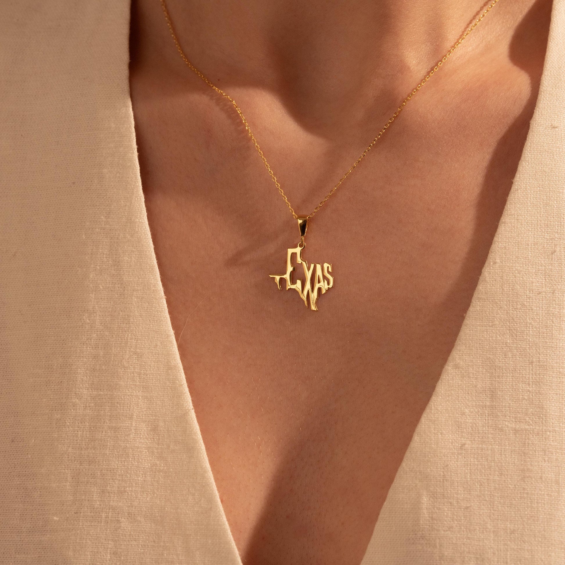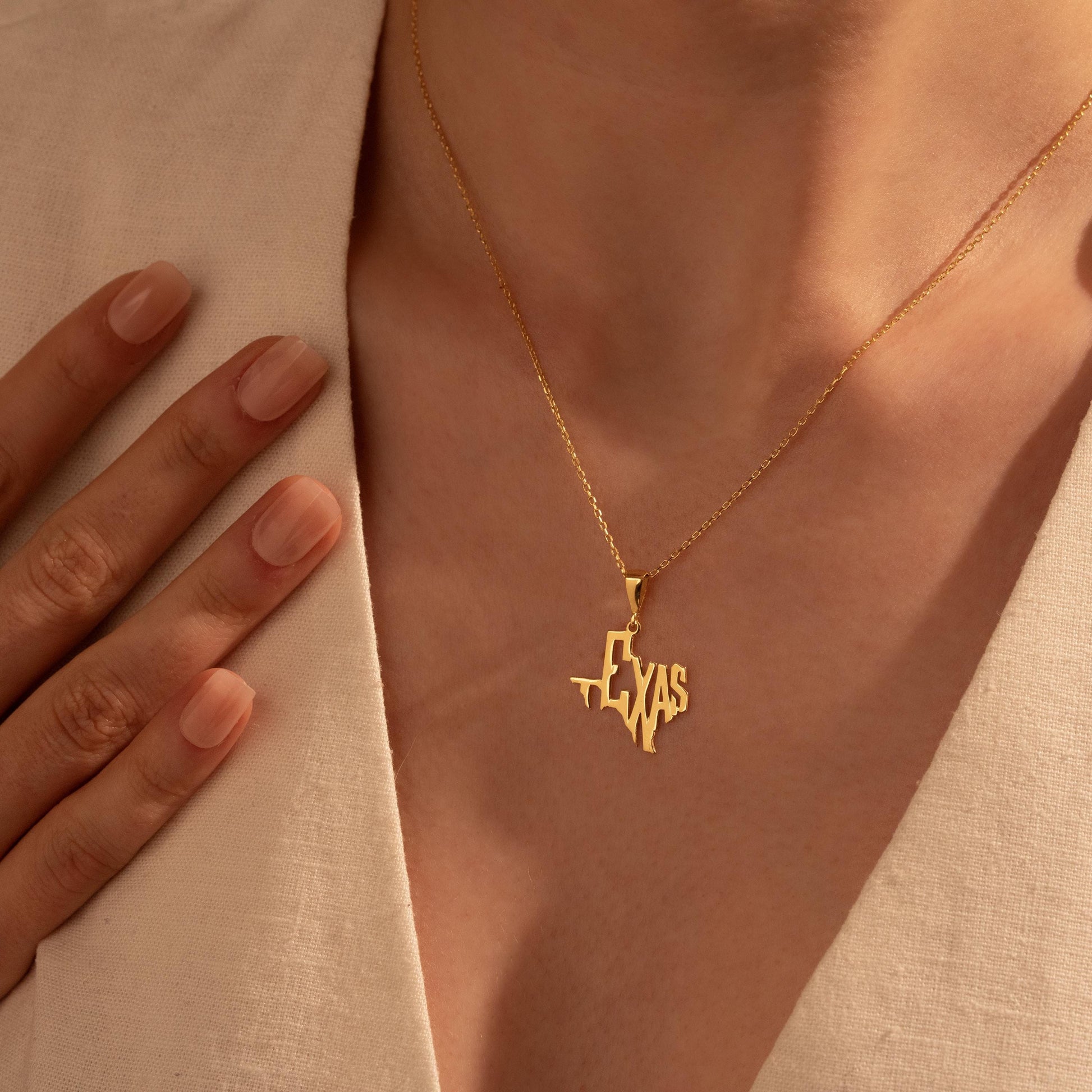 Texas Map Necklace – Custom State Pendant, Gold Plated Texas Jewelry Gift